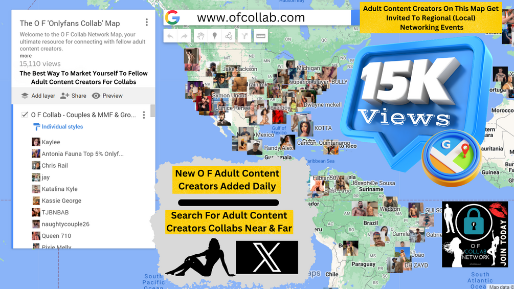 Featuring adult content creators from across the globe. Clusters of adult content creators in New York, Atlanta, Houston, Miami, Las Vegas, Los Angeles, and more. Purchase your map access today and set up your collabs.